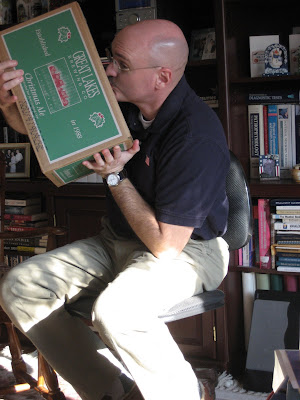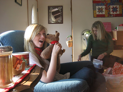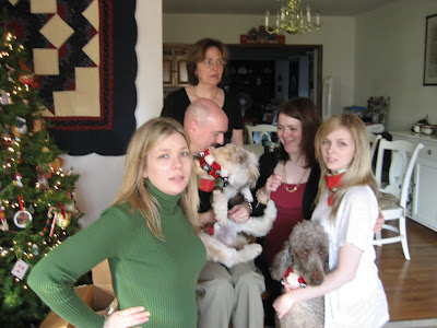 bailey investigating the new dog treats w/ max in the corner sniffing in