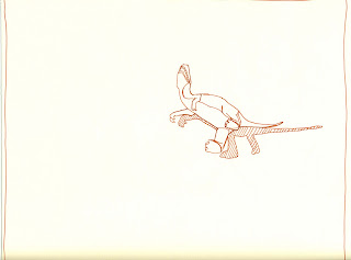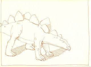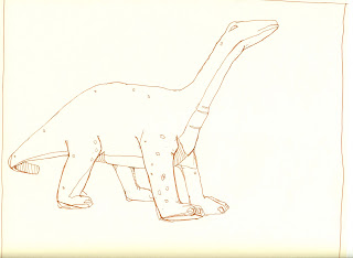 I just love drawing dinosaurs. Something about them, their teeth, the texture of their skin, their nails, they are so interesting to draw. In this series of drawings I made I am describing their fall from man-eating power reptiles to the cheap plastic toys that they really are. And on a side note-----ED HAS JUST OVER 50 DAYS LEFT and then he'll be home! I am really excited to finish the 'donut of misery.' xoxo