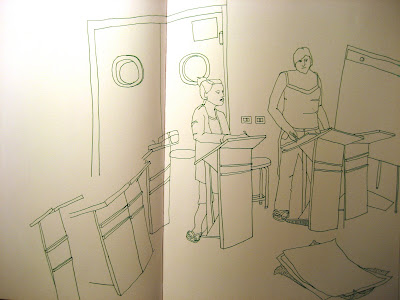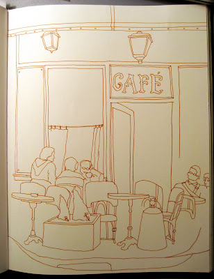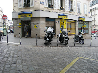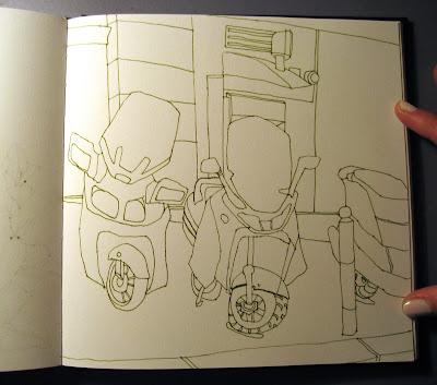 Today started off magnificently well with the cutest pastry ever in a star shape with a star shaped paper wrapper. It was just as good as it was cute. We sat around and drew for a while. I was intrigued by the motorbikes across the way in front of the post office.