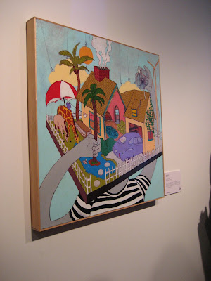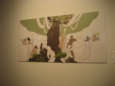 Thank you to all you out there that came to the opening of The Sims: In the Hand of Artists. There were some very last minute changes with my project to appease the people at EA Games. I guess the use of the word 'cigarettes' in my final version didn't sit well w/ PR, so I had to change it the night before. Instead of the cigarette cartons that I made by mounting my printed out illustrations onto wood blocks, they put up print outs of my work. They are sized up to be around 18x26. Here are some pictures of my original project and then the one that is up now. I also put up pictures of some of my favs. I can't figure out how to put captions right below the pictures, so following my project is the lovely Peter Sriployrung's Garden of Eden, Jessi Kempin [http://iamjessik.com] who won a prize for her painting pictured here, and Florian Sanger [http://www.littlebunch.net].