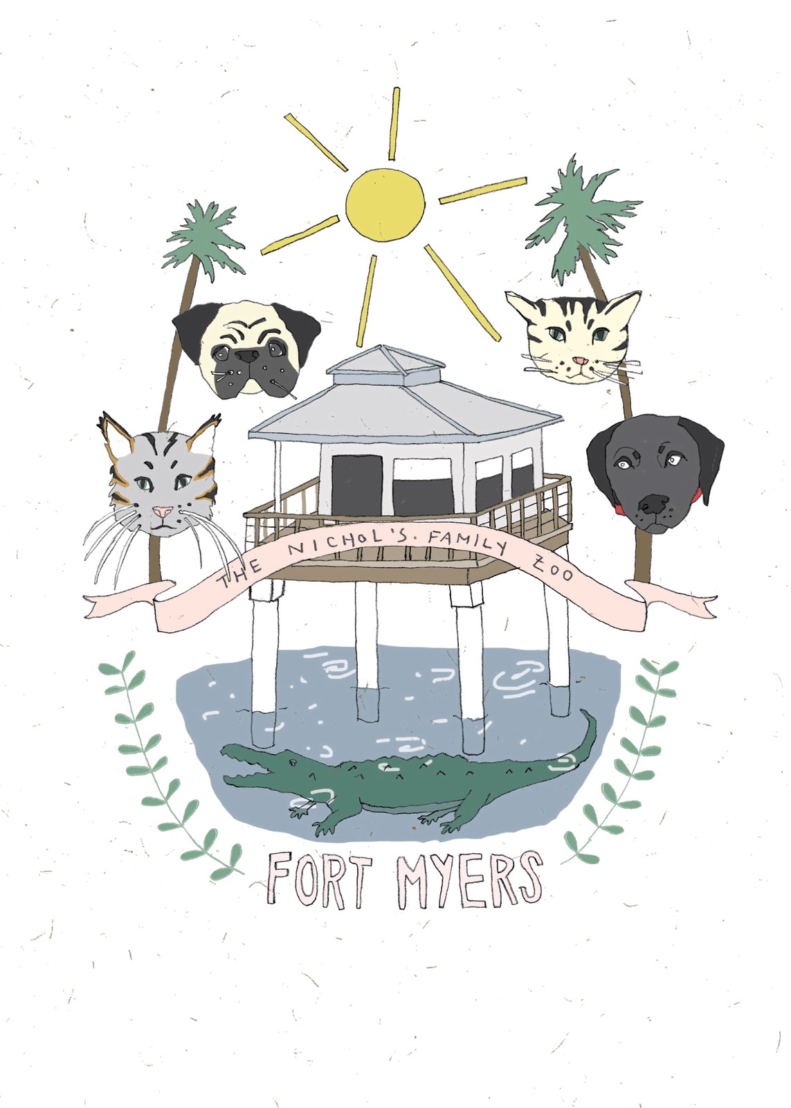 Sarah + Joe were looking for an illustrator to make table placards illustrating the numerous locations that they have visited when they were dating. Sarah + Joe were dream clients, so fun and so open to what I had to suggest. The couple gave me a list of places, foods & items that meant something to them for each city. To personalize it a bit more, I asked for a short 1-liner to add into the banner for each city. In the end, I illustrated 19 cities that would be used on their 19 tables at their wedding. Each city will be for one table and be posted for their guests to find.