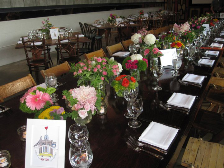 The lovely Sarah sent me a picture of how the table placards (previously posted here) were used in their wedding. You can see the New York City one right in front and the Atlanta one in the top left.