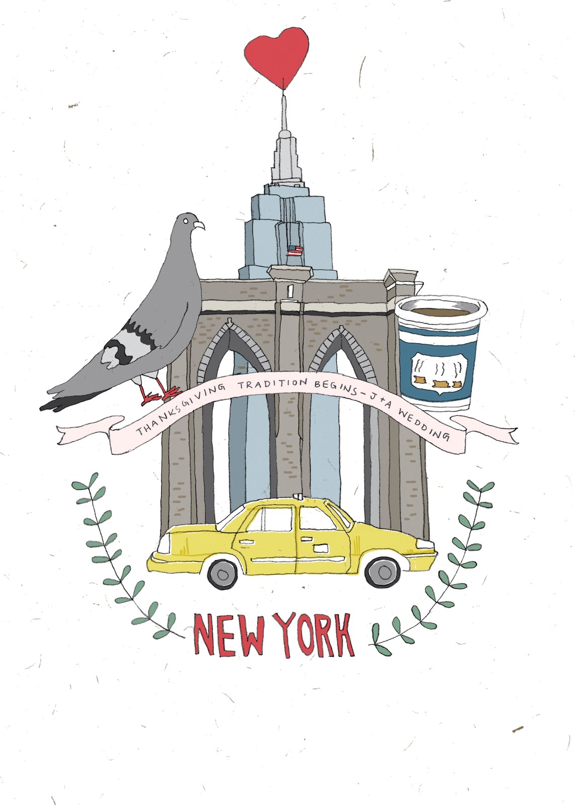 Sarah + Joe were looking for an illustrator to make table placards illustrating the numerous locations that they have visited when they were dating. Sarah + Joe were dream clients, so fun and so open to what I had to suggest. The couple gave me a list of places, foods & items that meant something to them for each city. To personalize it a bit more, I asked for a short 1-liner to add into the banner for each city. In the end, I illustrated 19 cities that would be used on their 19 tables at their wedding. Each city will be for one table and be posted for their guests to find.