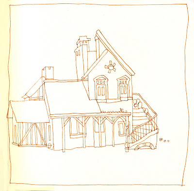 School is picking up. Things are starting to build up w/ more intense projects. I think I figured out a more successful story-line for my children's book, I will be starting to develop my website (keep an eye out for it in a few months, it will just be my name, lindseybalbierz.com), plus drawings for my painting class. the joy of art school. For now, here is a drawing I did for my concepts class of a house from Marie Antoinette's village in France. I saw it when I went to France in 2004. How time flies.