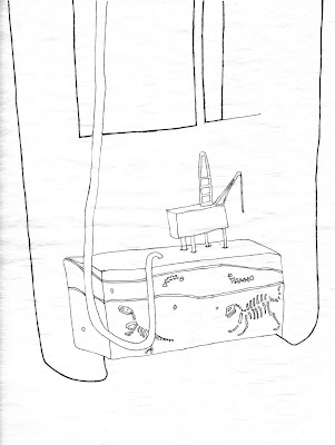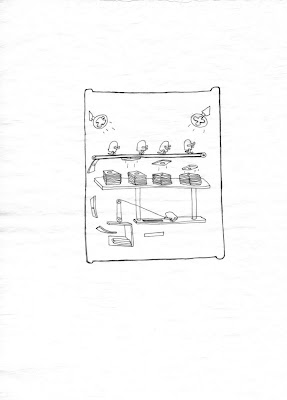 ...and on your Saturday morning when you look foreward to watching cartoons, your mom drags you out to do errands with her. You go fill up the gas tank, mail some letters, go to the atm, pay the parking meter, and eventually help do laundry when you get back home. These drawings interpret what a child may imagine during that trip.